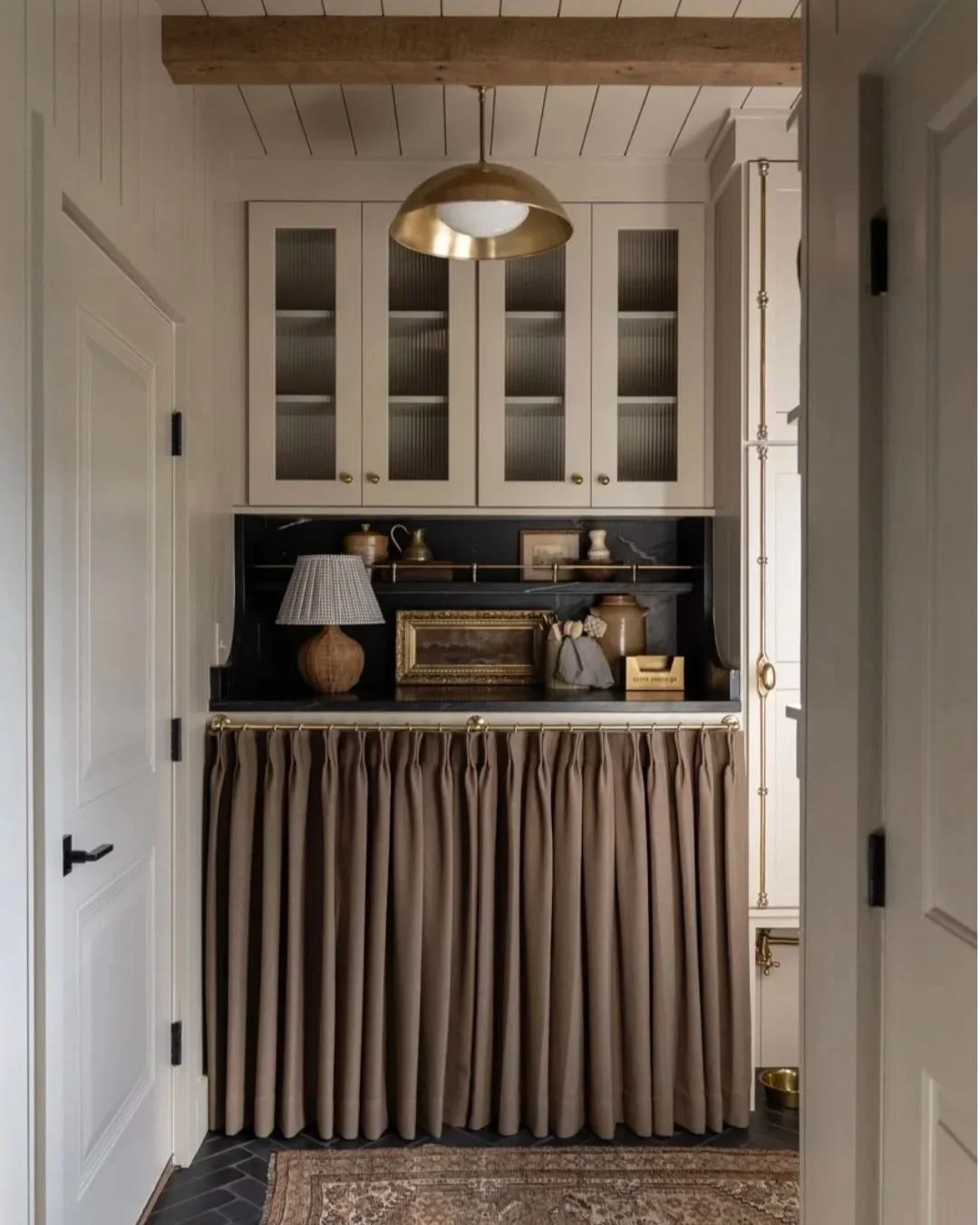 None of this requires a renovation or a big budget. A basket from a secondhand shop, a console with doors you already own, a curtain panel in a doorway, these are quiet interventions that compound over time. Even adding a curtain to the glass doors on your cabinet can let the room have visual space to breathe again. The home doesn't have to be perfect. It just has to feel like it's on your side.