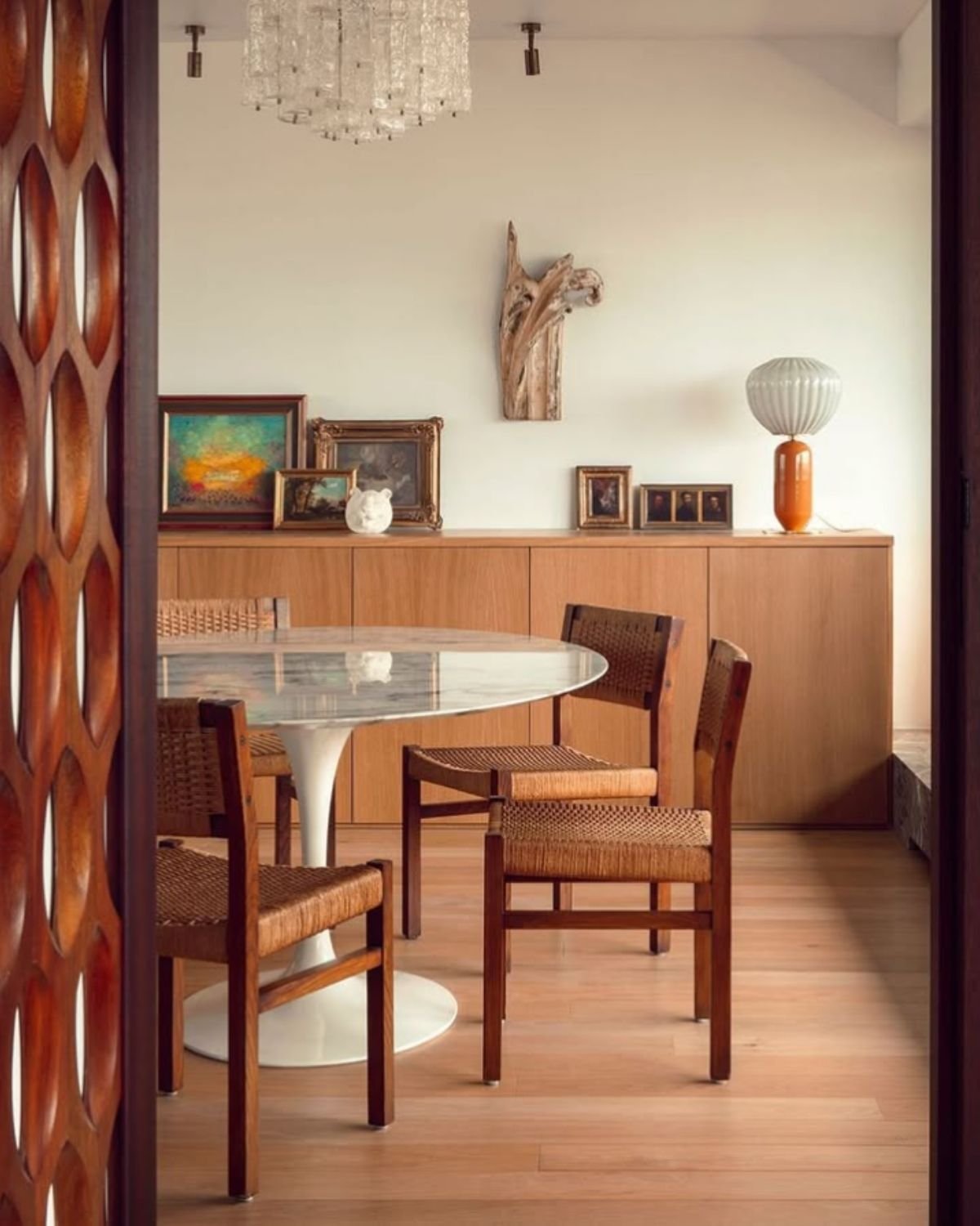 This is where closed storage becomes one of the most underrated tools in a home. A cabinet with doors, a console with drawers, a basket with a lid, these things are not admissions of defeat. They are good design. The mess doesn't disappear, it just stops demanding your attention every time you walk by. And that shift, from visible chaos to contained chaos, does something real for your mental load. You can breathe. The room feels manageable. And you feel less behind.