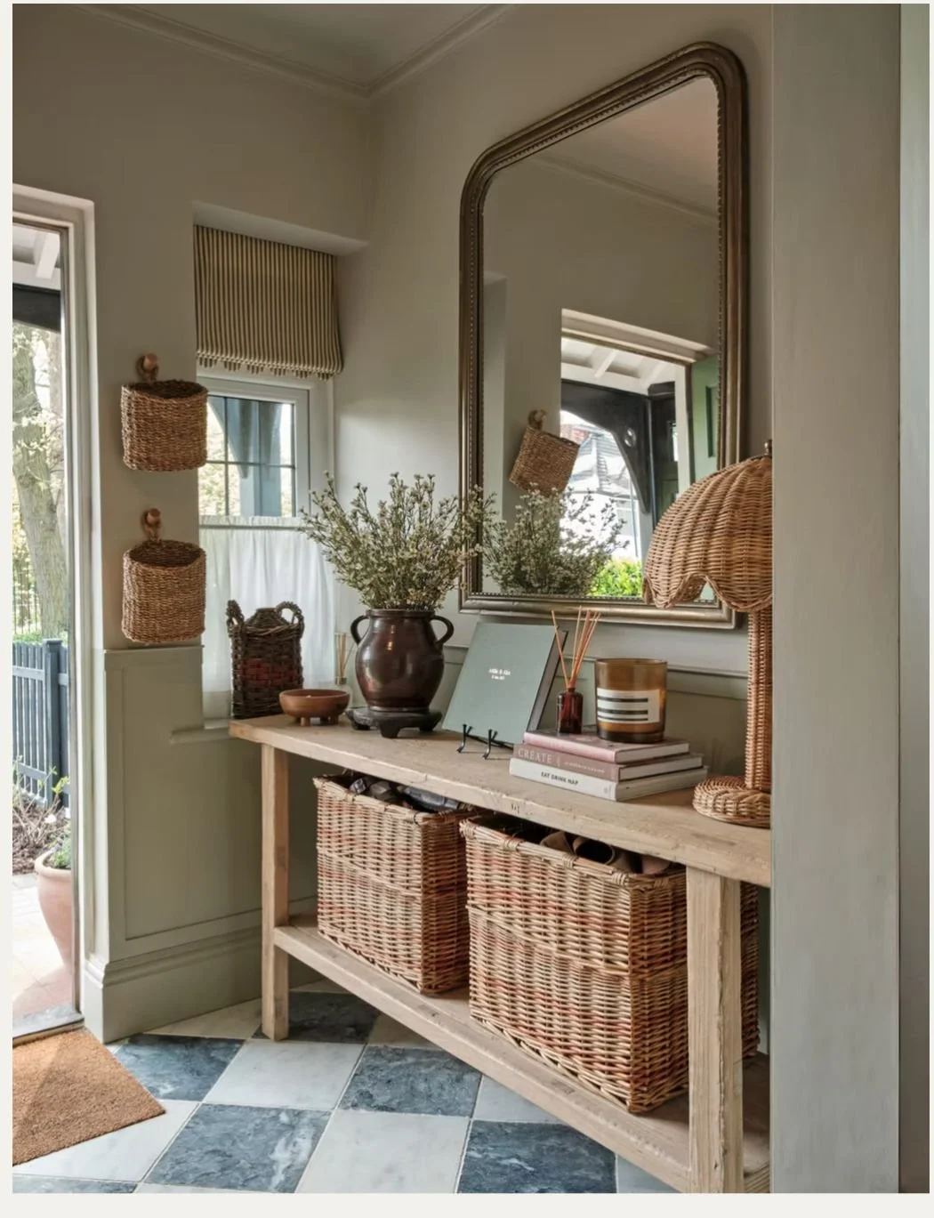 If you're looking for a place to start, a few pieces I love are linked below. Baskets in natural textures, consoles with closed storage, and simple curtain panels that do the job beautifully without a lot of fuss. A mix of new and secondhand or vintage finds at various price points, because the best version of this is almost always a little of both.